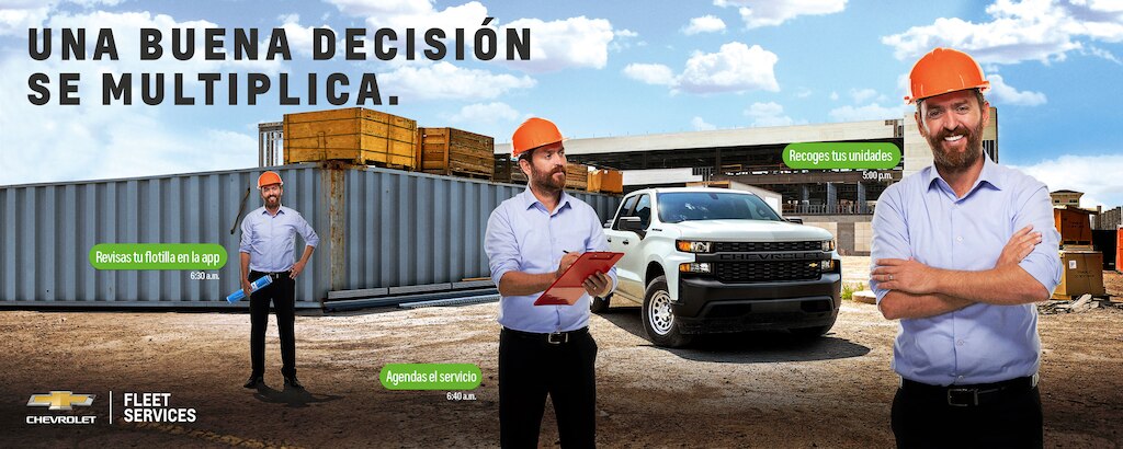 Con nuestro compromiso de Servicio Preferencial, Facturación Electrónica Centralizada, OnStar® y Beneficios Adicionales para tus empleados, elegir el servicio de flotillas Chevrolet Fleet Services, es una buena decisión que se multiplica todos los días.